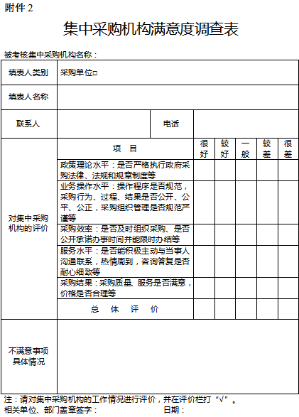 2. 集中采购机构满意度调查表