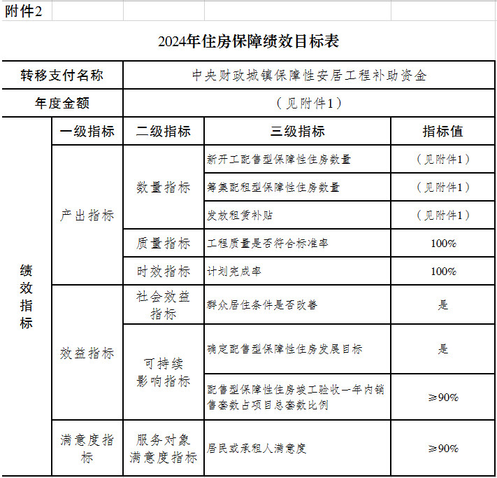 2. 2024年住房保障绩效目标表