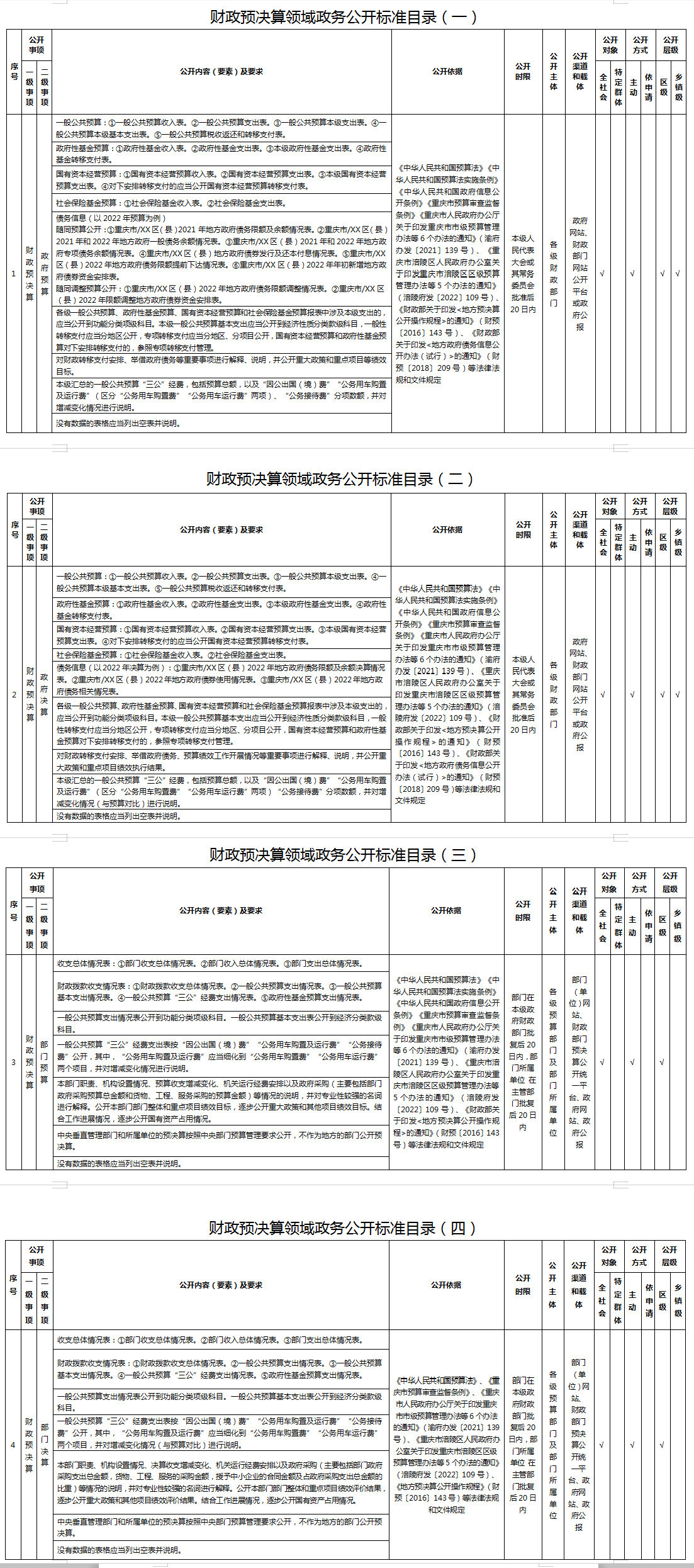 重庆市涪陵区财政预决算领域基层政务公开标准目录(2023年版)