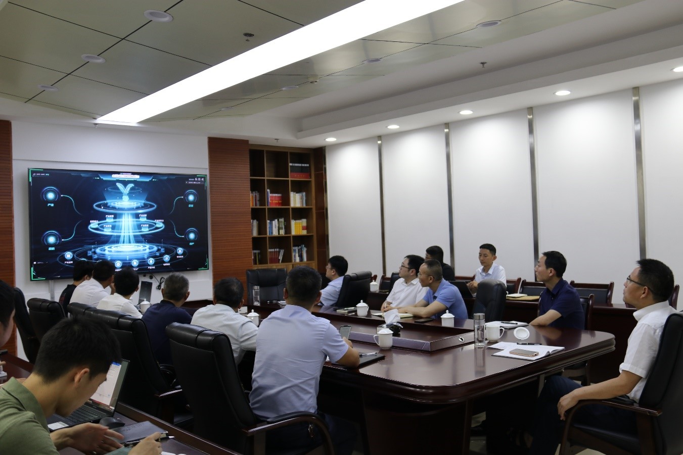 会上,誉存科技对现阶段“榨菜产业大脑”客户端、手机端、展示终端三端的开发情况进行了简要介绍,随后各单位相关负责人对平台的功能模块给出了修改意见。