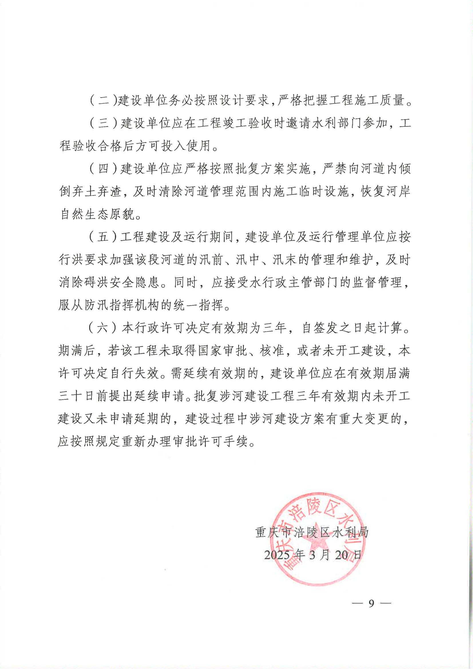 重庆市涪陵区水利局关于中化涪陵磷石膏无害化堆场项目洪水影响评价的行政许可决定