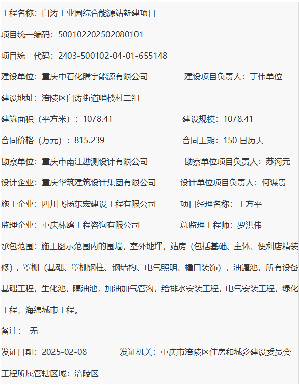 白涛工业园综合能源站新建项目 建筑工程施工许可