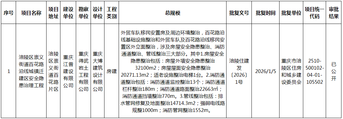 重庆市涪陵区建设工程初步设计审查审批统计报表(2026年1月5日新增)