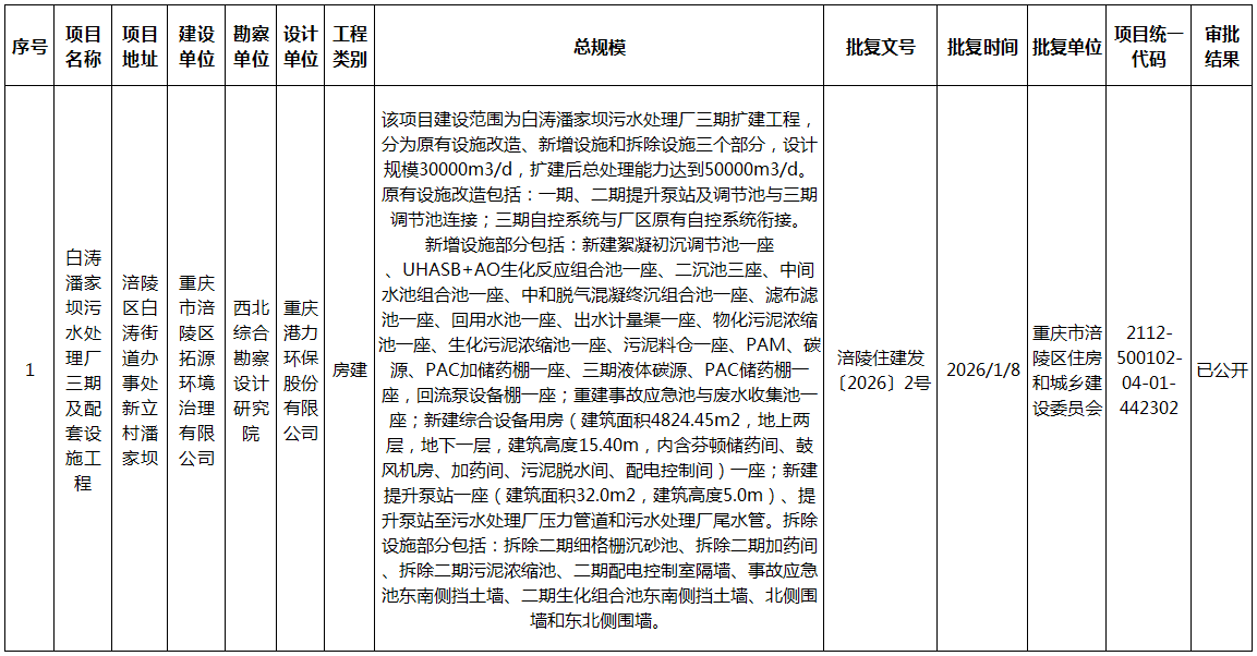 重庆市涪陵区建设工程初步设计审查审批统计报表(2026年1月8日新增)
