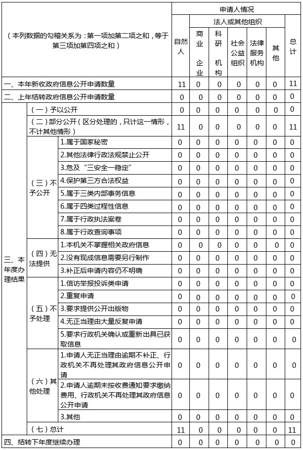 三、收到和处理政府信息公开申请情况