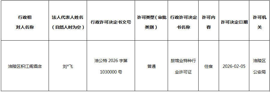 涪陵区枳江阁酒店行政许可结果公开.docx