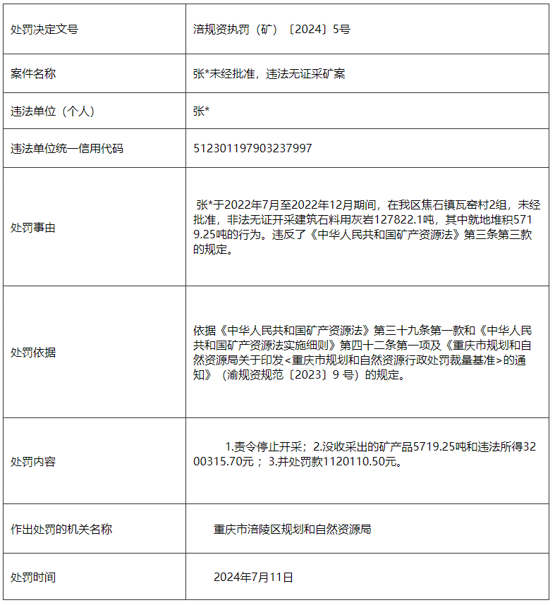 涪规资执罚(矿)〔2024〕5号