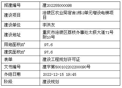 涪陵区农业局宿舍2栋2单元增设电梯项目