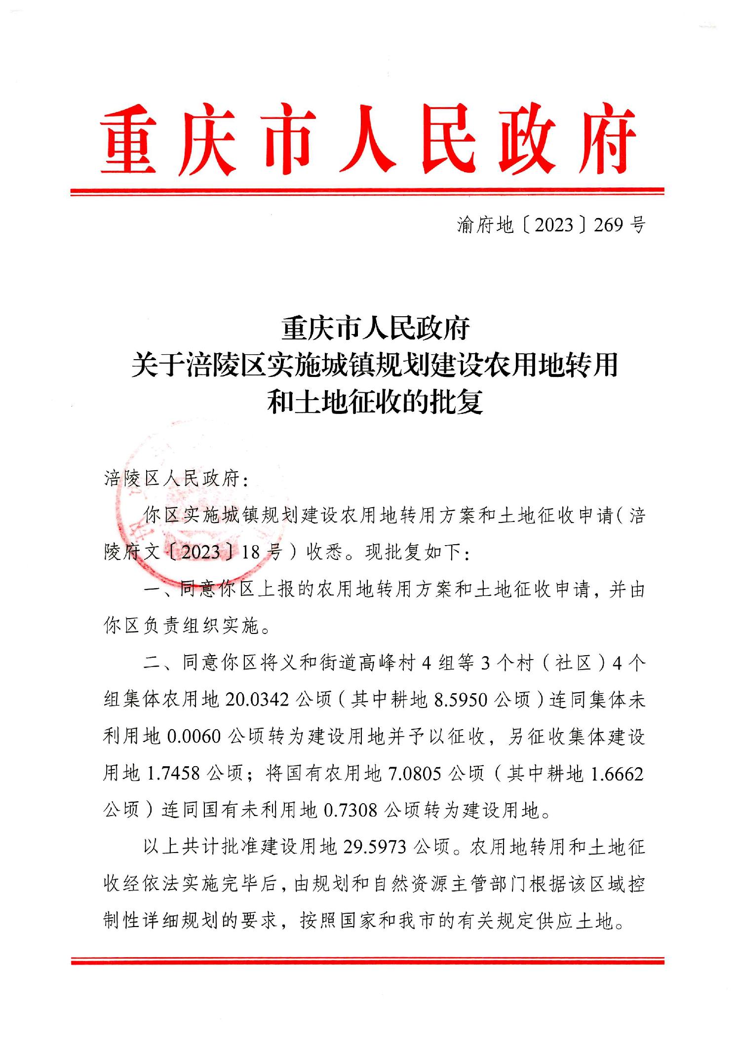 渝府地【2023】269号 义和—批次(青山)