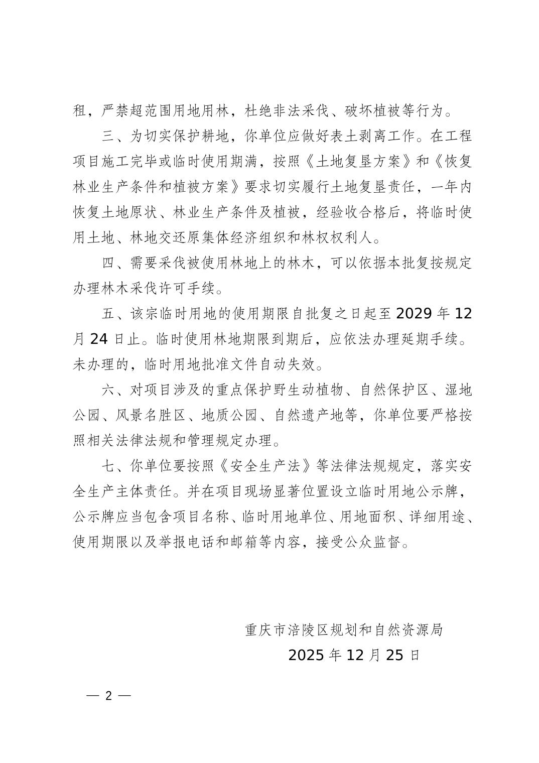 重庆市涪陵区规划和自然资源局关于新建宜昌至涪陵高速铁路(涪陵境)第二批临时用地的批复 涪陵规资临地〔2025〕69 号