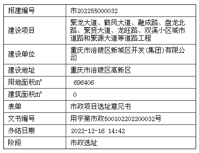 聚龙大道、鹤凤大道、融成路、盘龙北路、聚贤大道、龙旺路、双溪小区城市道路和聚源大道等道路工程