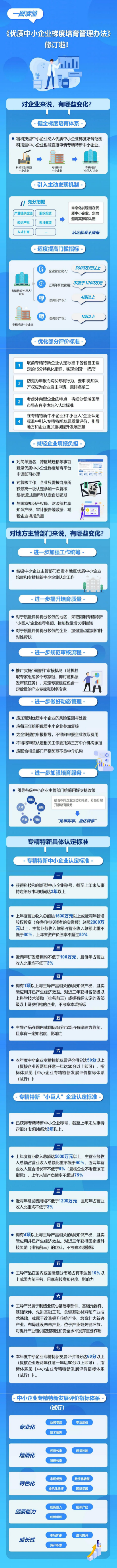 我们将继续会同各部门、各地方,持续优化完善优质中小企业培育、服务和管理工作,支持中小企业专精特新发展再上新台阶。欢迎社会各界监督并提出宝贵意见建议。