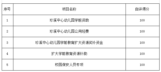 根据预算绩效管理要求,按照预算绩效管理要求,我单位对校园保安人员工资8.23万元、普惠性幼儿园公用经费14.7万元、学前教育资助4.97万元、学前教育资源扩大奖补资金55.75万元等4个项目开展了绩效自评,其中,以填报目标自评表形式开展自评4项,涉及资金83.65万元;以委托第三方形式开展绩效自评0项,涉及资金0万元。