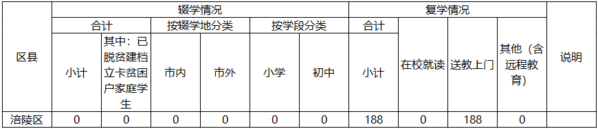 重庆市涪陵区义务教育控辍保学工作进展报表(2023年)