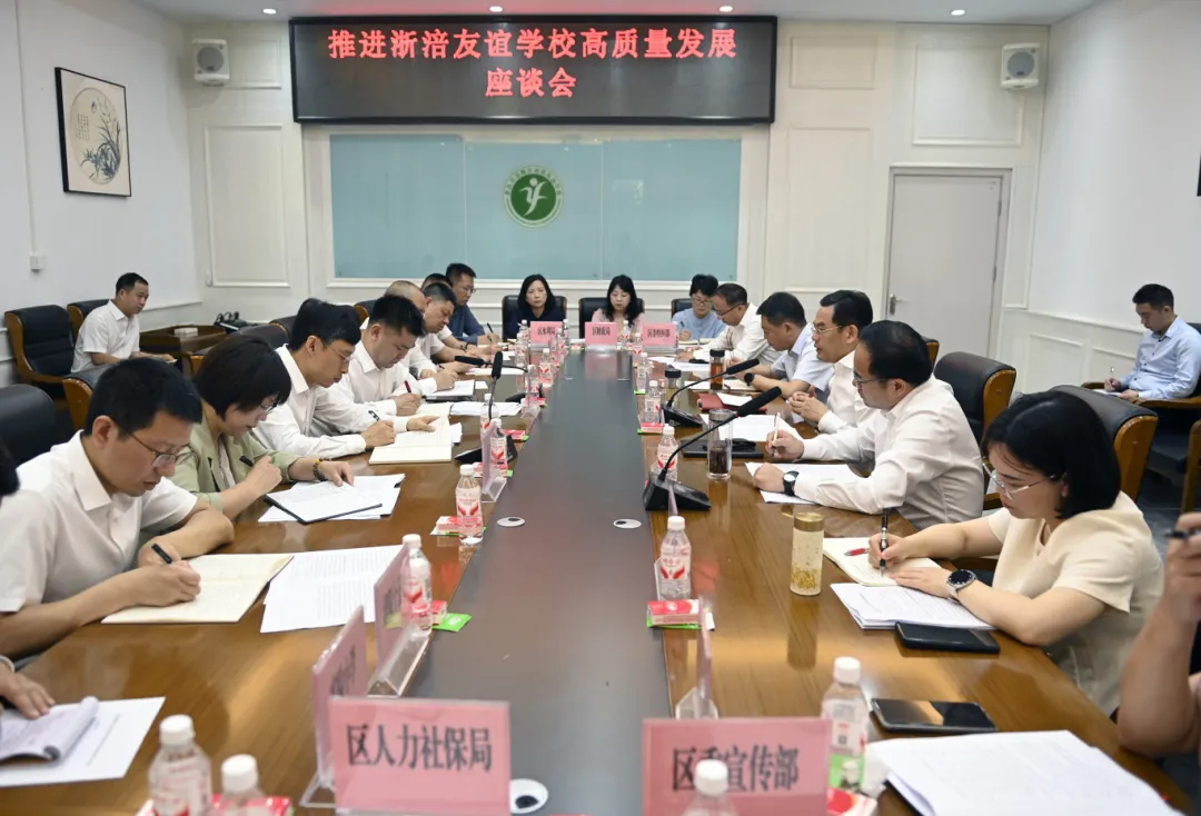 5月19日,涪陵区委书记黎勇,区委副书记、区政府区长董奕锋调研浙涪友谊学校高质量发展情况,并召开座谈会。区委副书记傅云,区领导王业平参加。