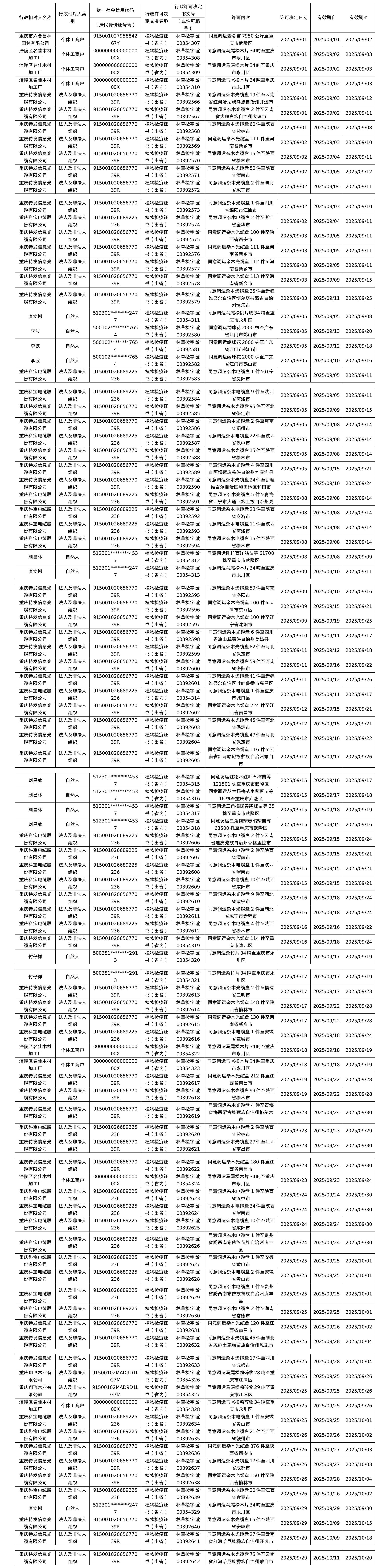 重庆市涪陵区林业局植物检疫证书核发信息(2025.9)