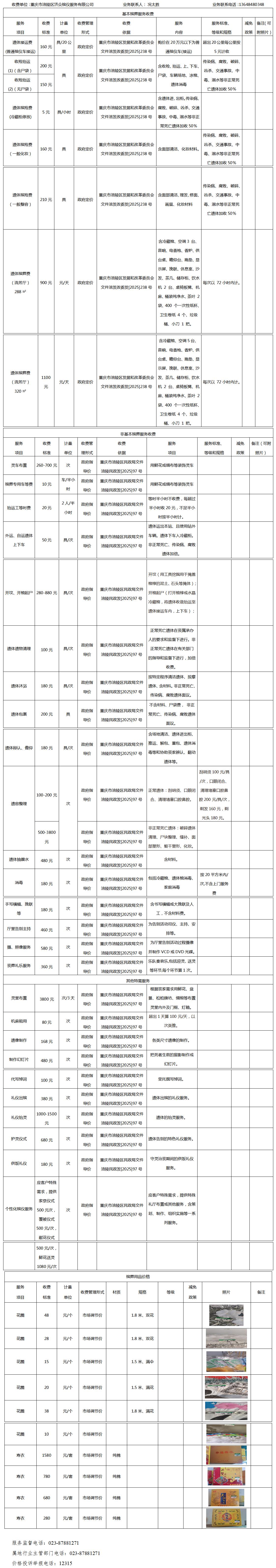 重庆市涪陵区济众殡仪服务有限公司收费标准集中公示