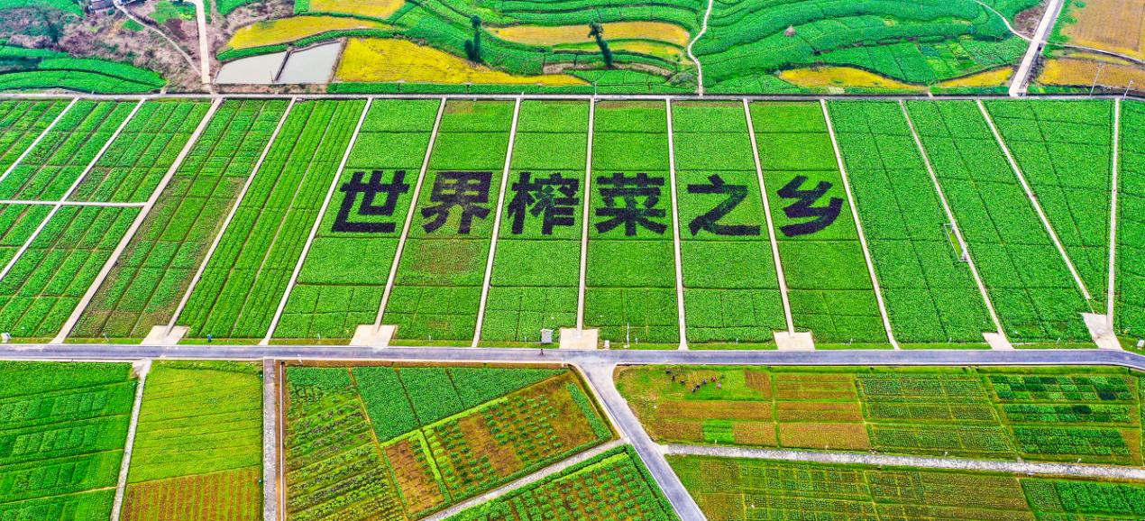 在国家现代农业产业园内,通过种植不同叶片颜色的青菜头形成了创意菜田画“世界榨菜之乡”,有利于涪陵世界榨菜之乡的宣传,体现了青菜头不光有食用性,也有观赏性,能推动榨菜产业对乡村旅游的带动,完善榨菜全产业链。