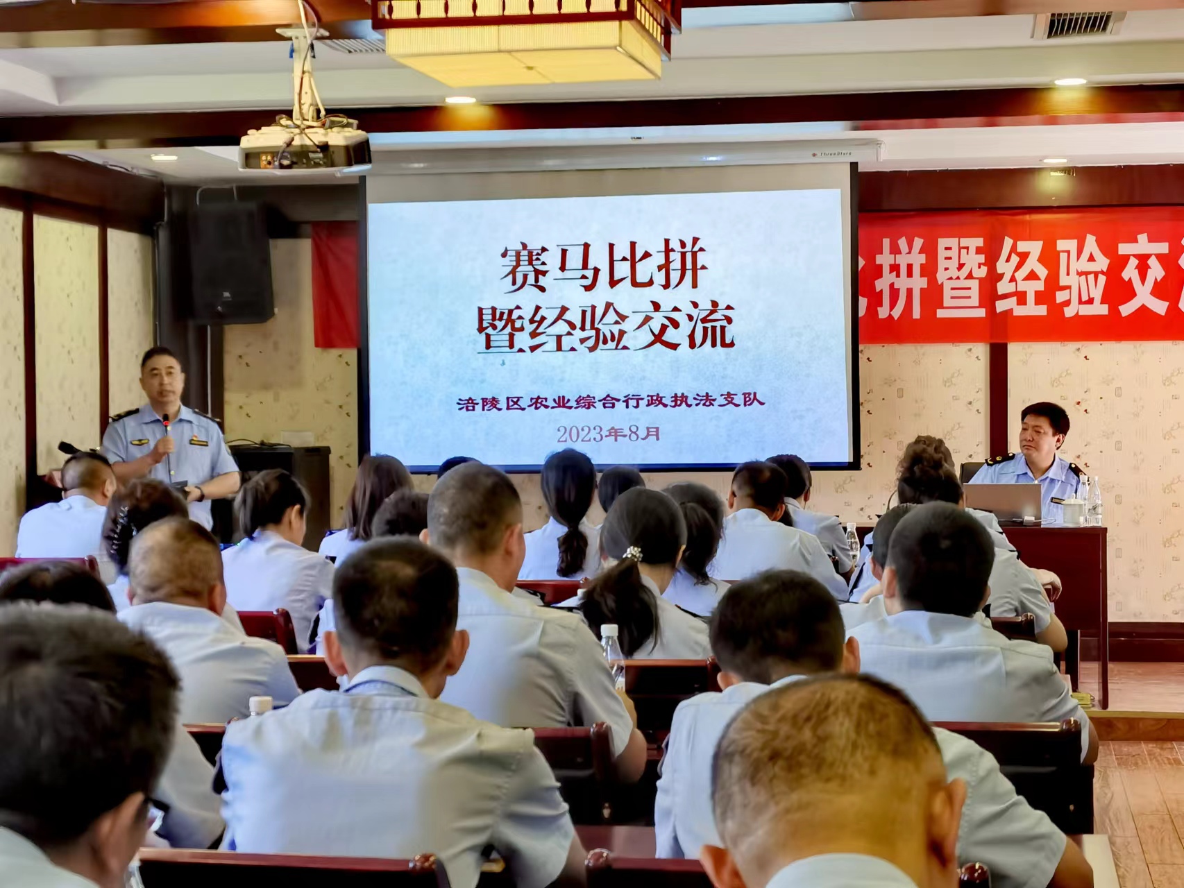近日,重庆市涪陵区农业综合行政执法支队精心组织开展“赛马”比拼暨经验交流大会。大会现场,各科队负责人轮番出马,通过拼实绩、比担当、评实效,激发和提振干事创业“精气神”。
