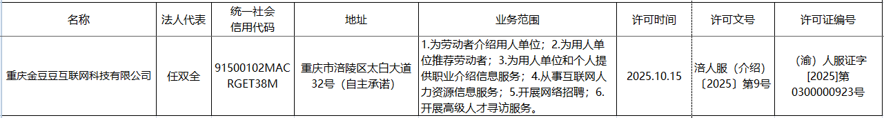 重庆市涪陵区人力资源和社会保障局职业中介活动准予行政许可决定书