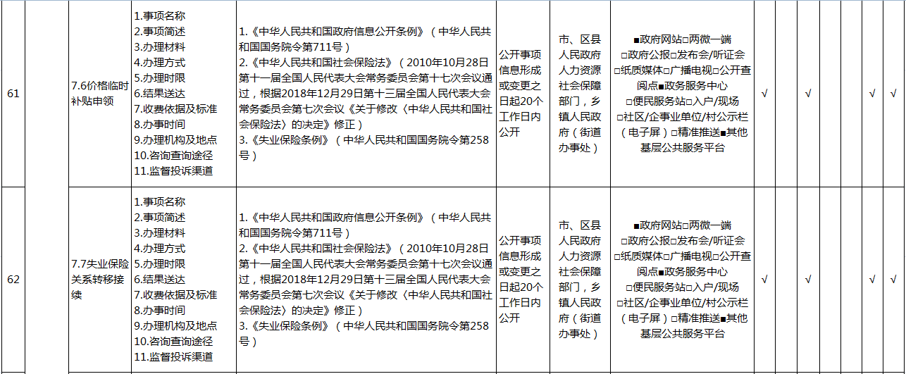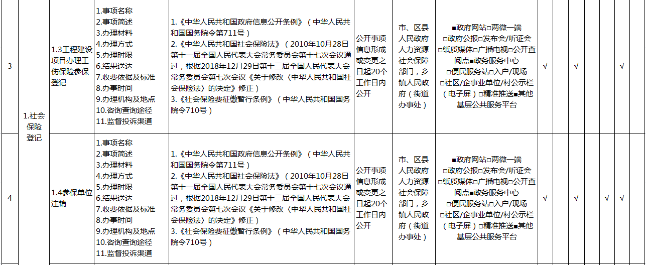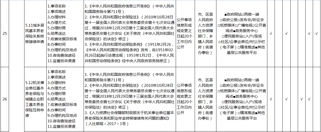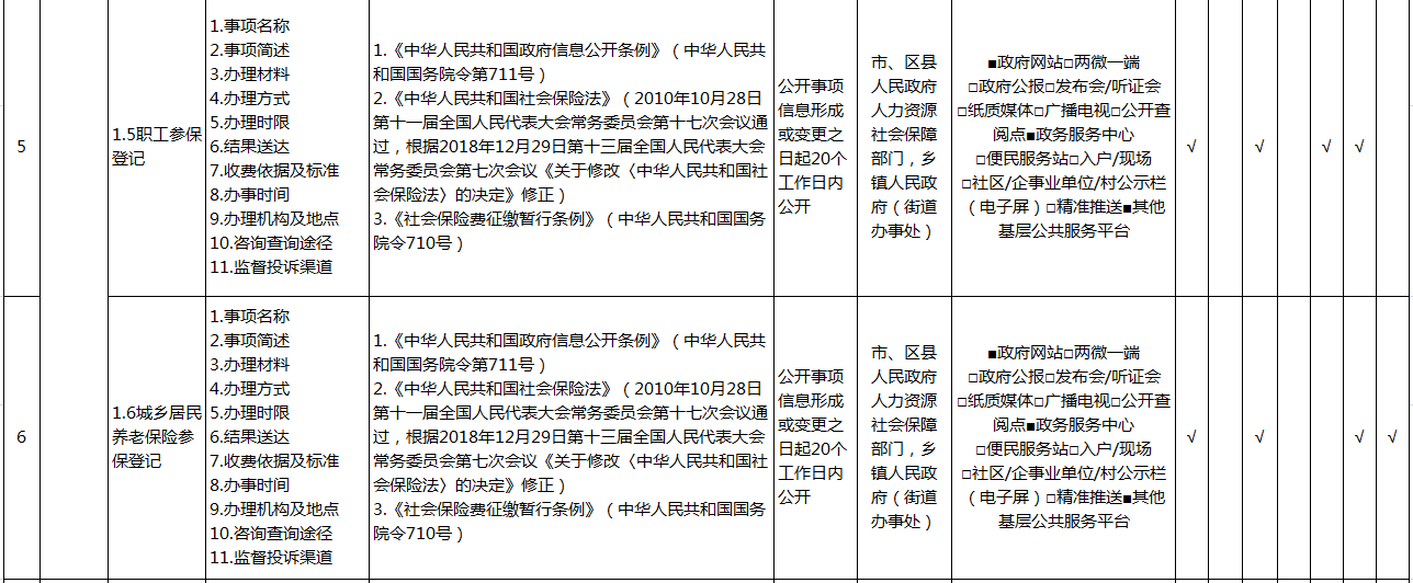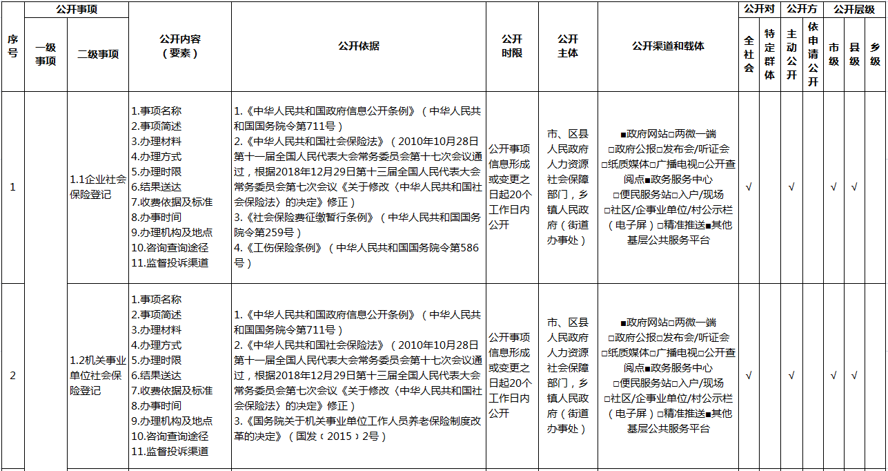 重庆市涪陵区社会保险领域基层政务公开标准目录(2026年版)