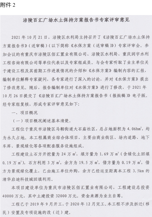 2. 涪陵百汇广场水土保持方案报告书专家评审意见