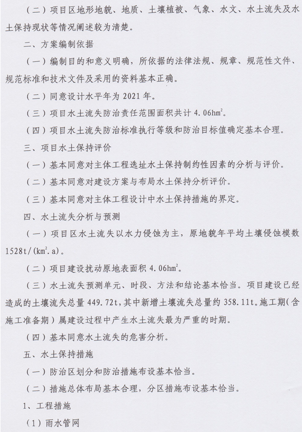 (四)同意水土流失防治分区及措施布设。
