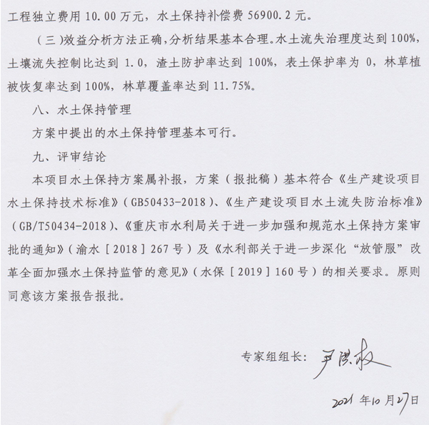 一、水土保持方案总体意见