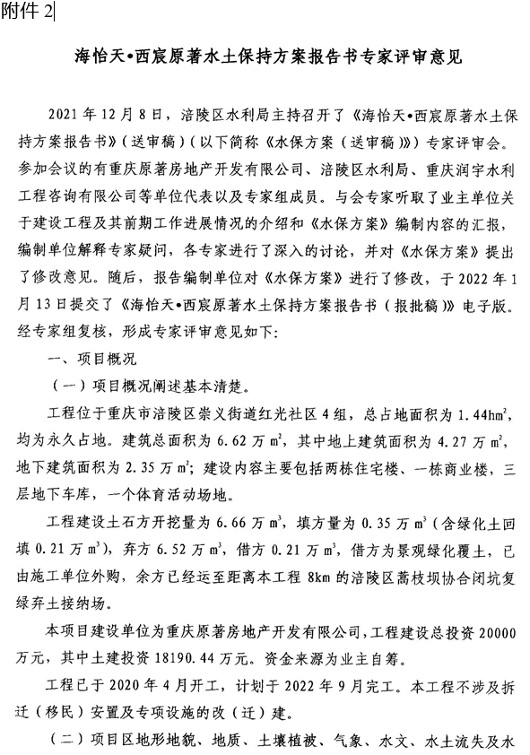 2. 海怡天•西宸原著水土保持方案报告书专家评审意见