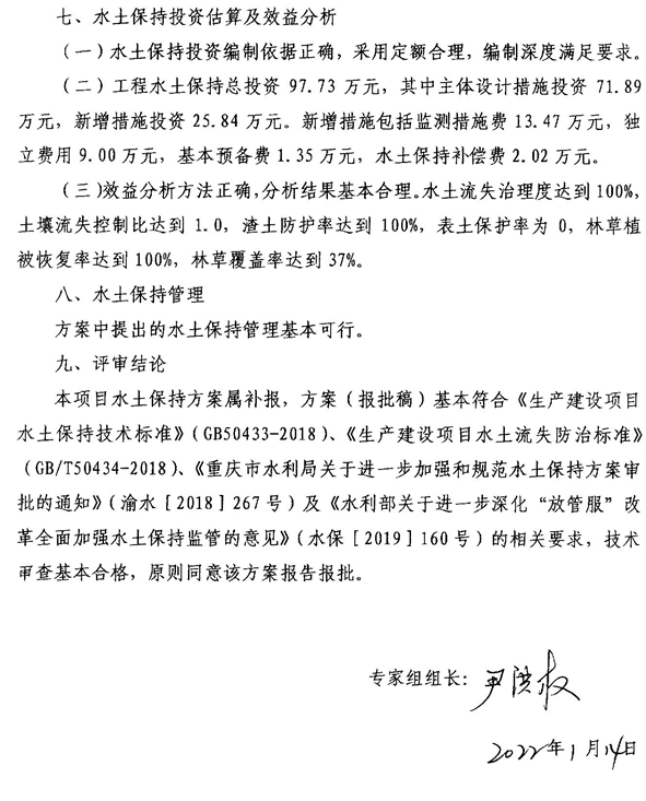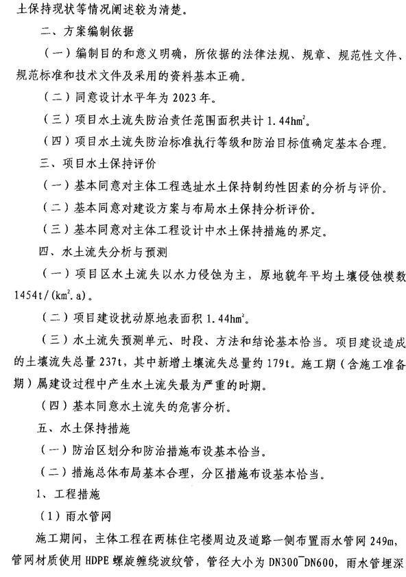 一、水土保持方案总体意见