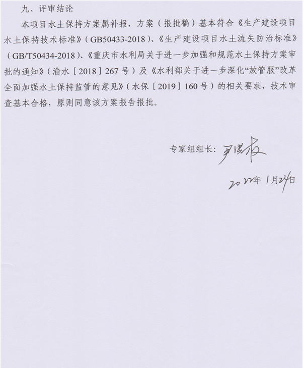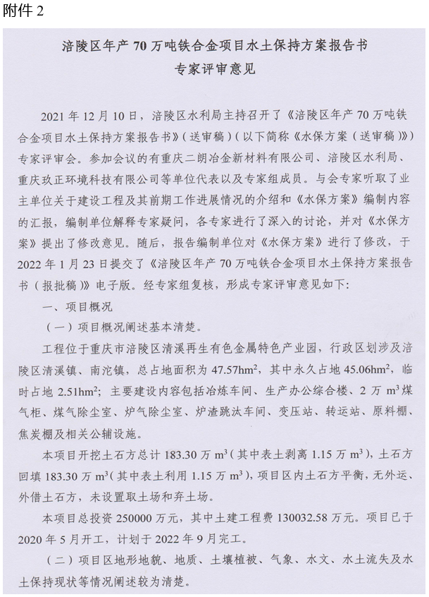 2. 涪陵区年产70万吨铁合金项目水土保持方案报告书专家评审意见