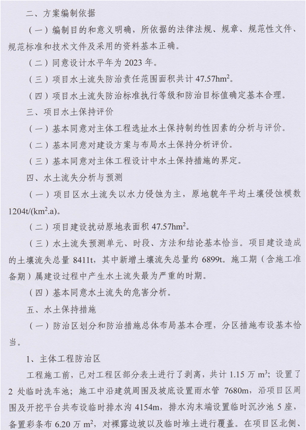 一、水土保持方案总体意见