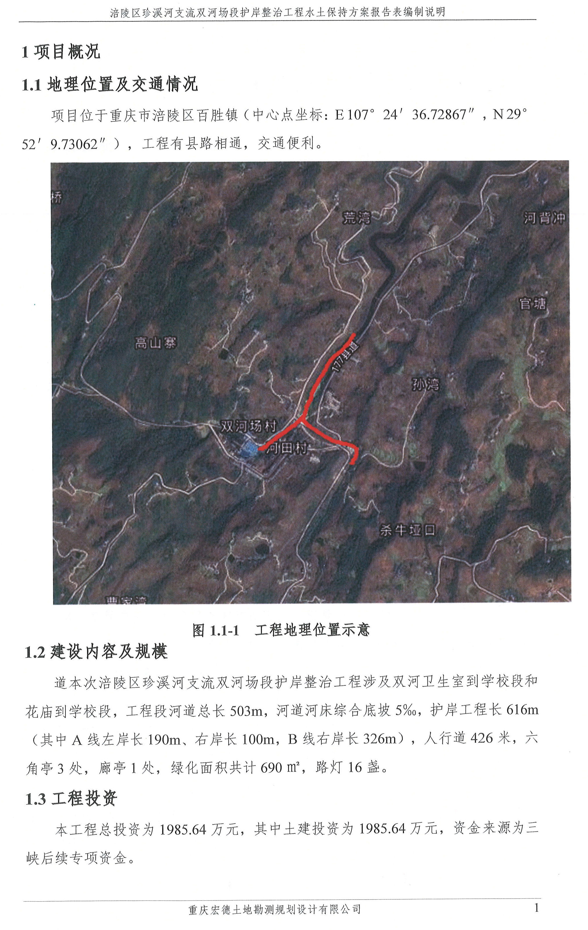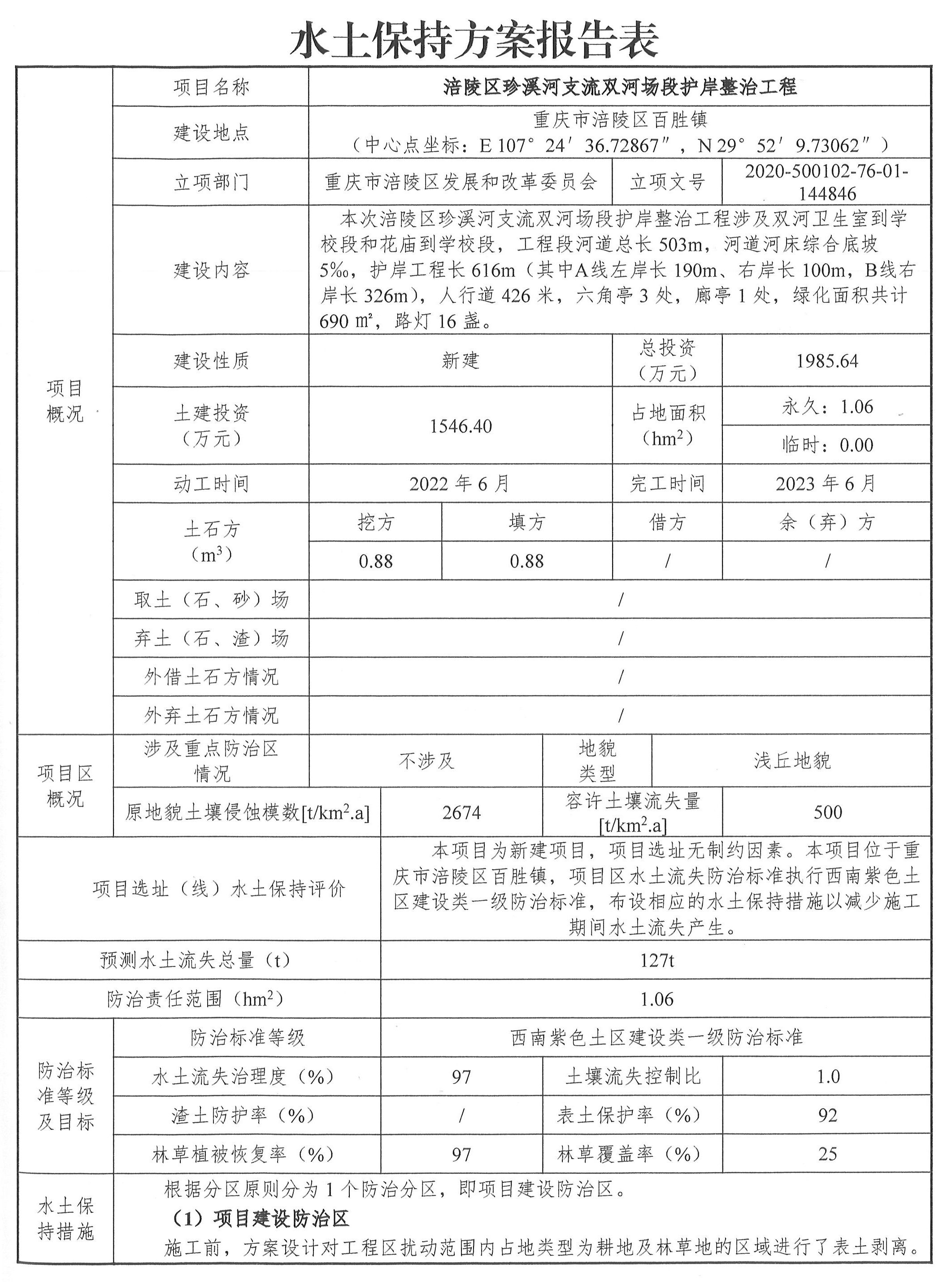 涪陵区珍溪河支流双河场段护岸整治工程项目