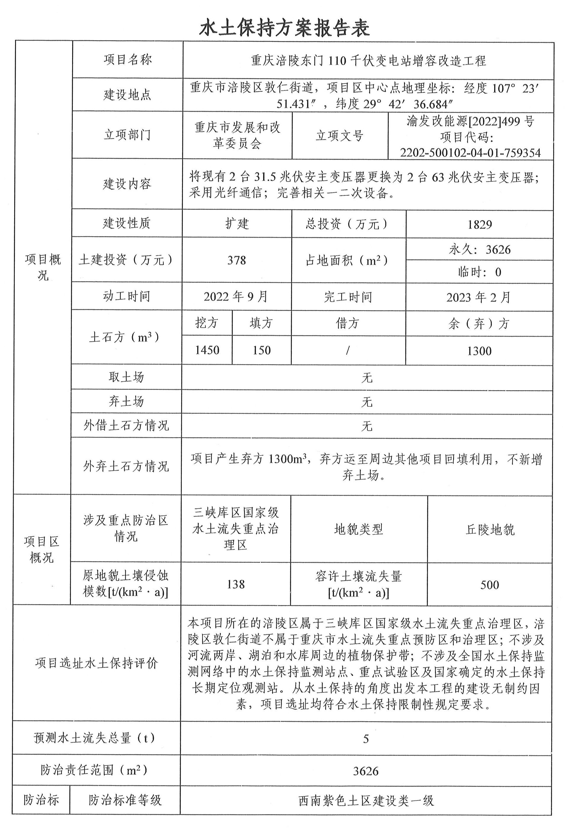 重庆涪陵东门110千伏变电站增容改造工程项目