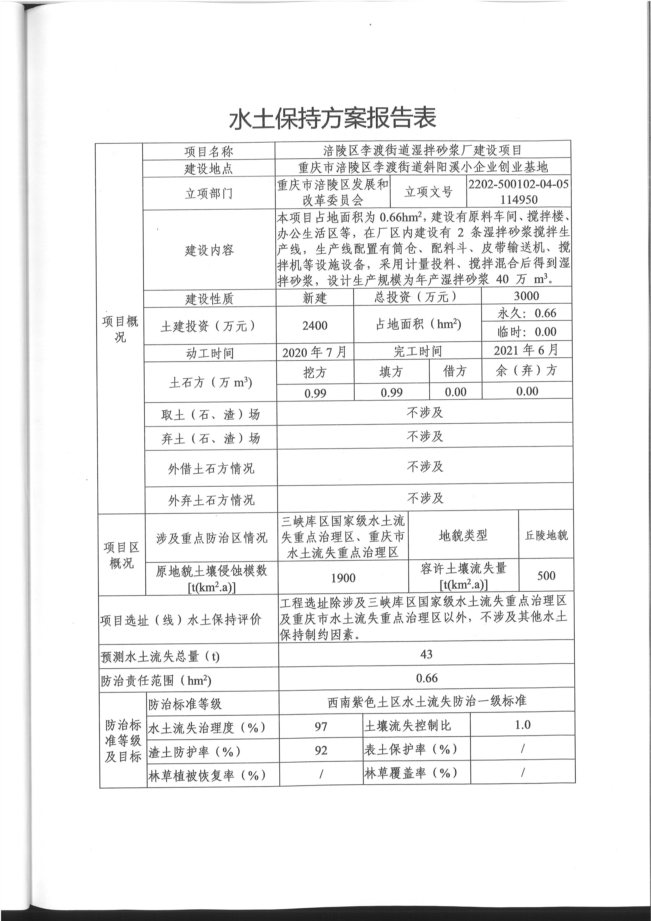 涪陵区李渡街道湿拌砂浆厂建设项目