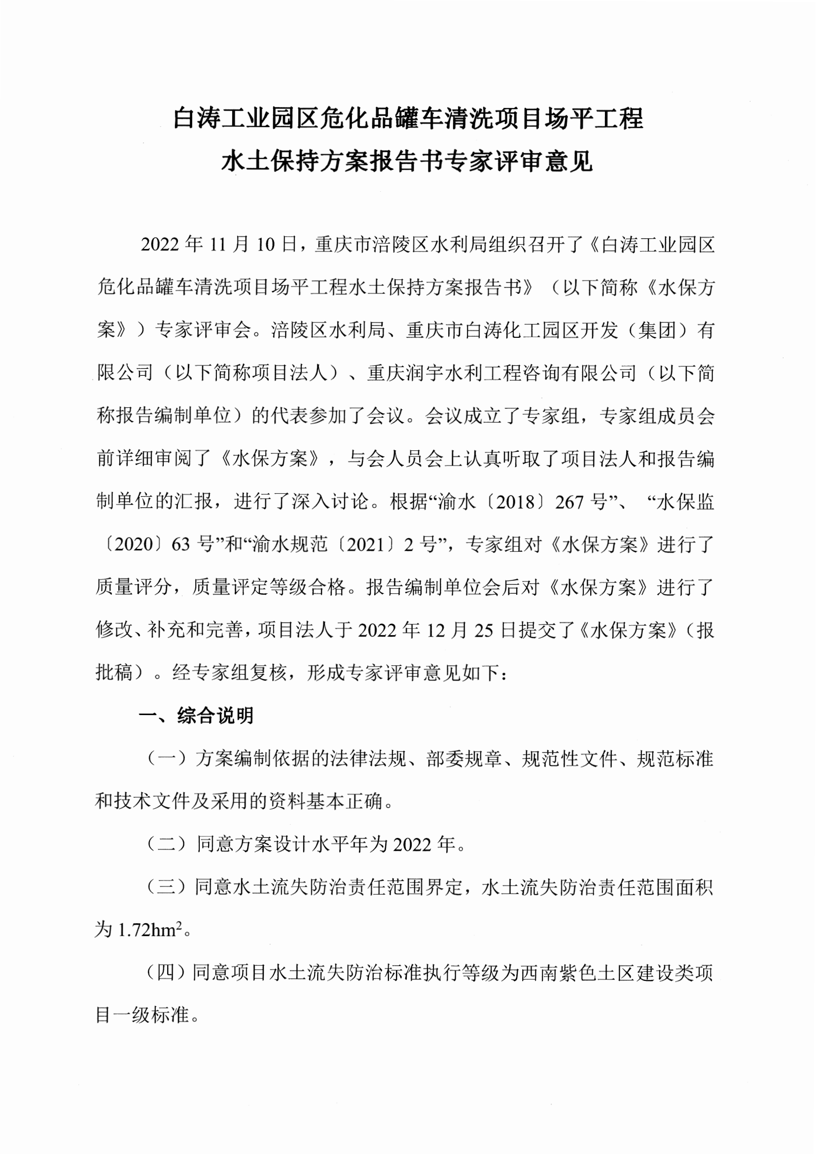 2.白涛工业园区危化品罐车清洗项目场平工程水土保持方案报告书专家评审意见