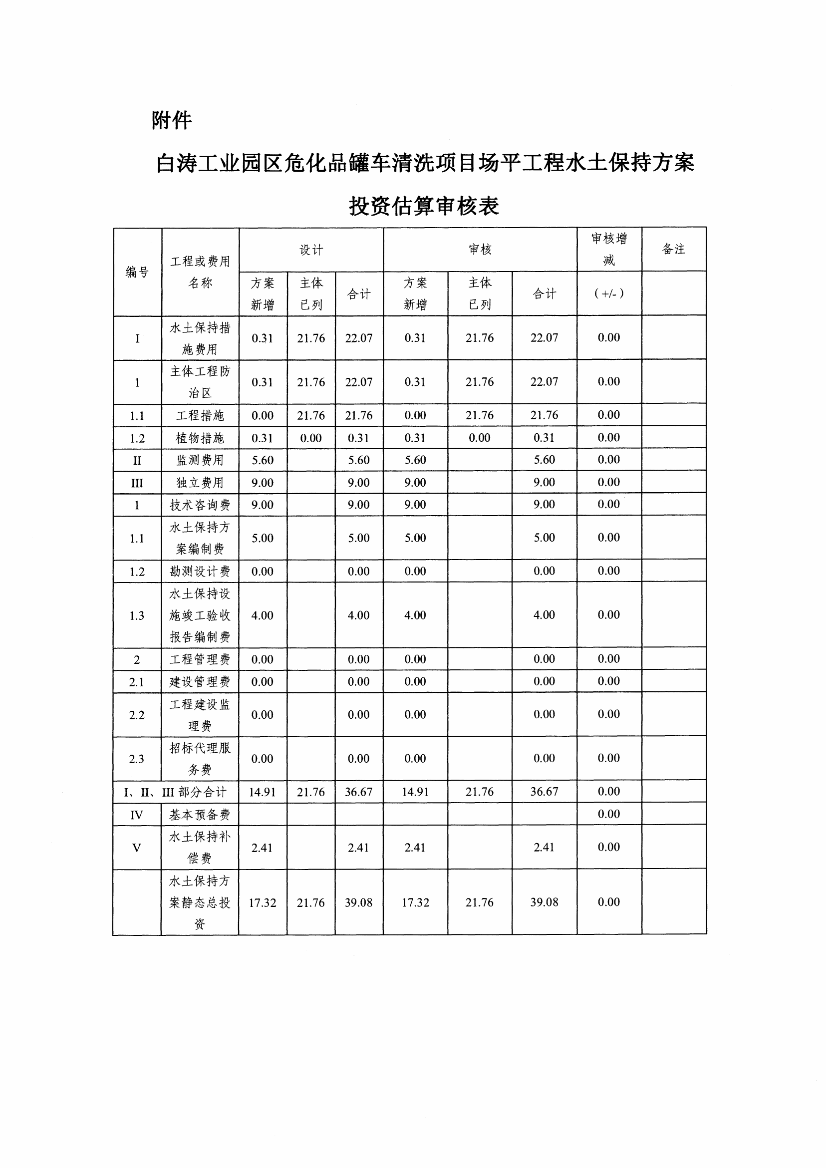 附件:1.白涛工业园区危化品罐车清洗项目场平工程水土保持方案特性表