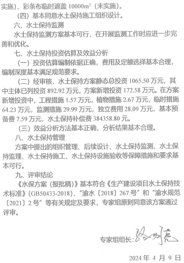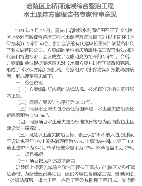 2.涪陵区上桥河流域综合整治工程水土保持方案报告书专家评审意见