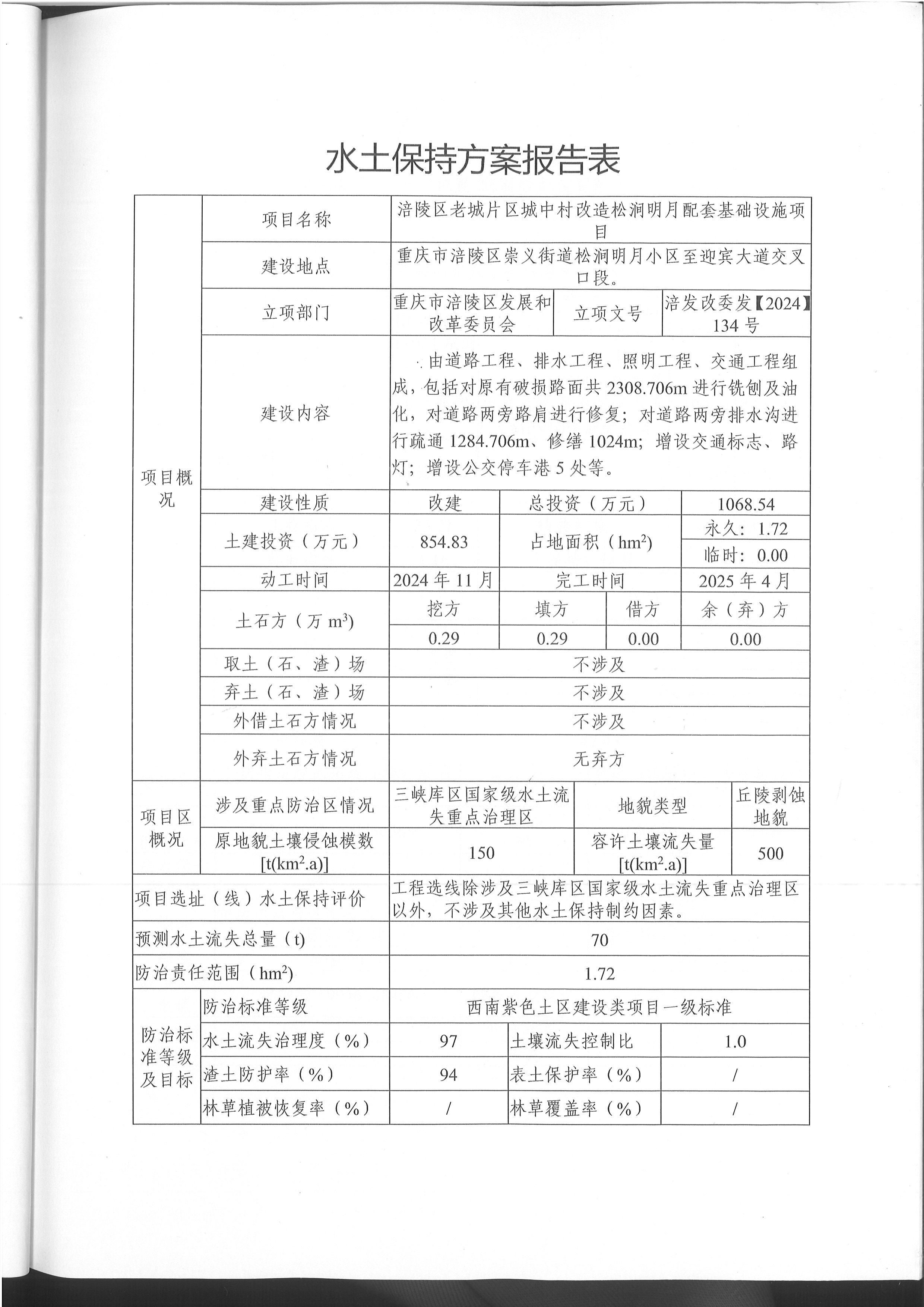 涪陵区老城片区城中村改造松涧明月配套基础设施项目