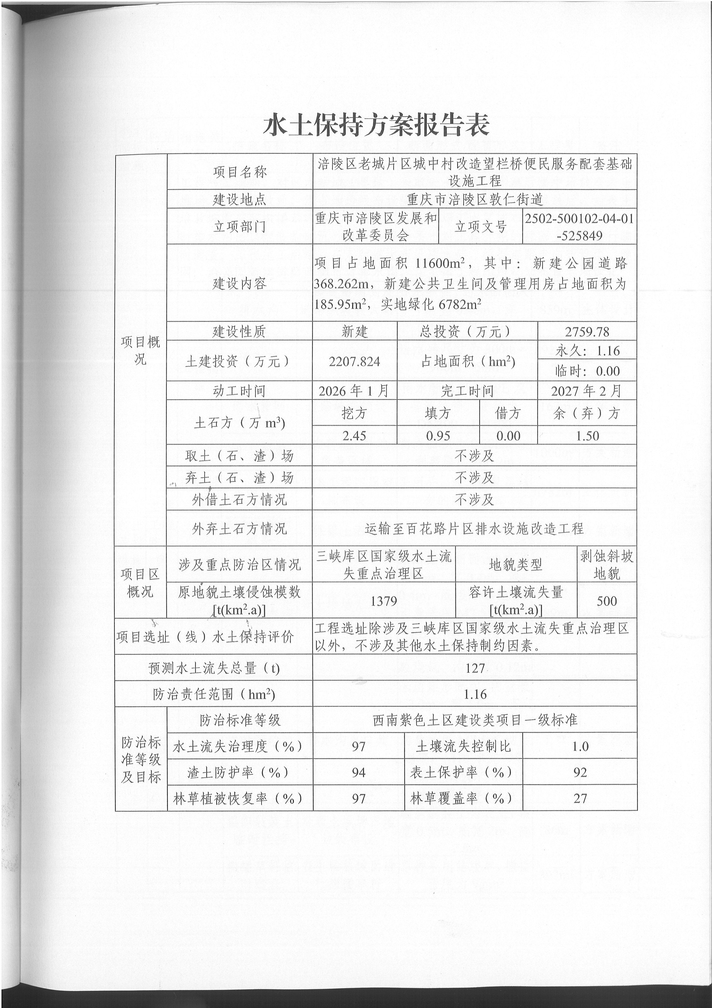 涪陵区老城片区城中村改造望栏桥便民服务配套基础设施工程项目