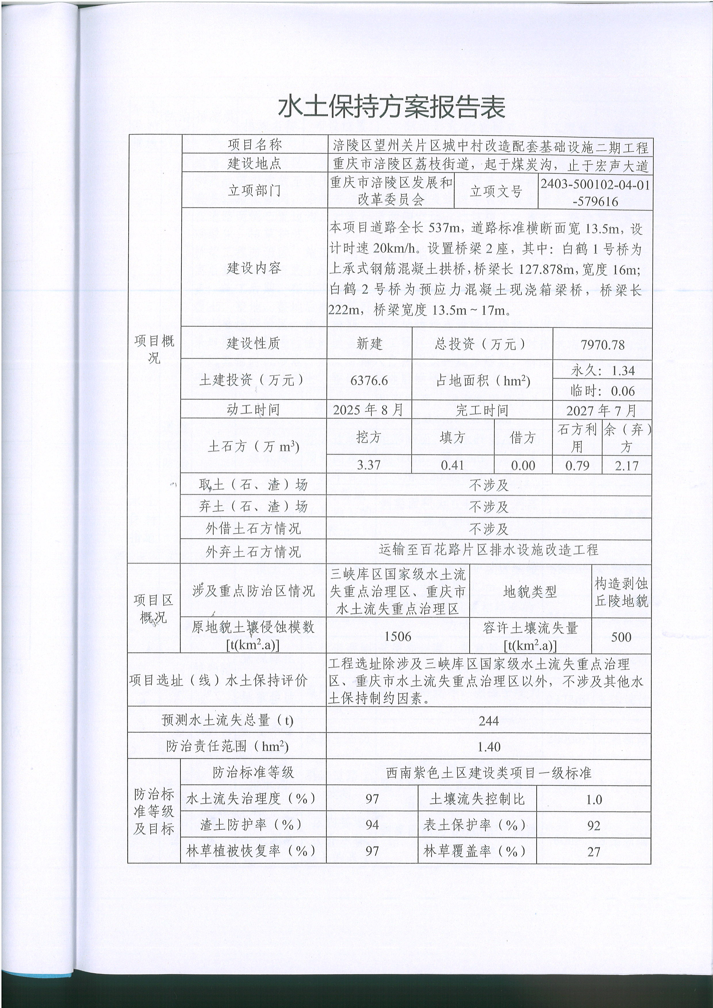 涪陵区望州关片区城中村改造配套基础设施二期工程