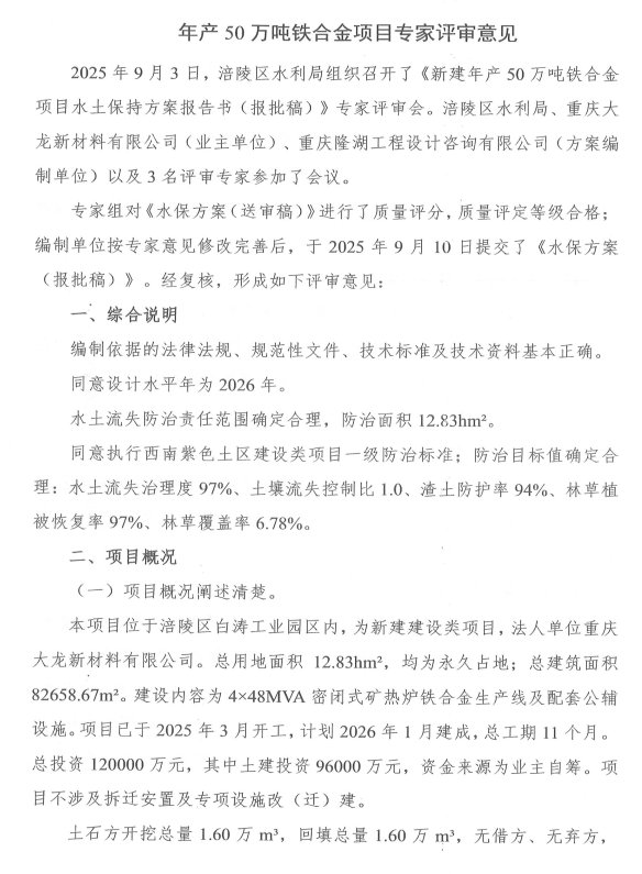 2.新建年产50万吨铁合金项目水土保持方案报告书专家评审意见