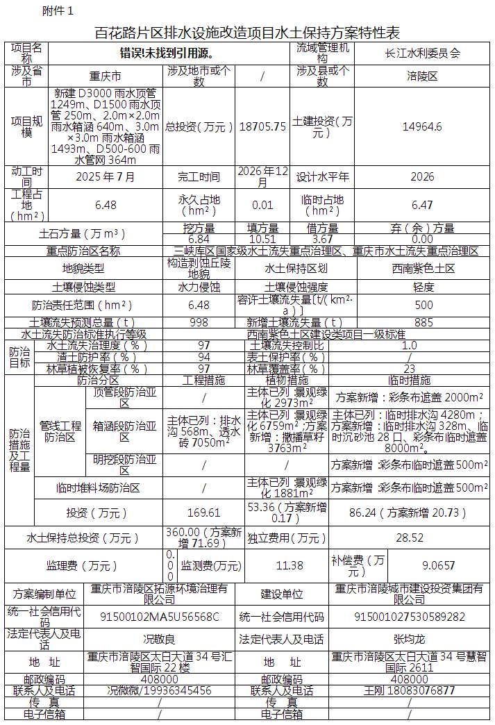 附件:1.百花路片区排水设施改造项目水土保持方案特性表