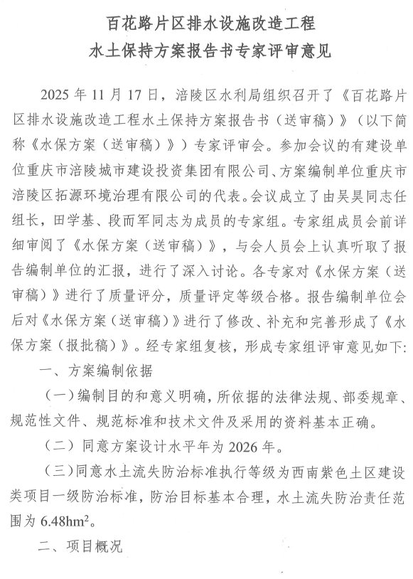 2.百花路片区排水设施改造项目水土保持方案报告书专家评审意见