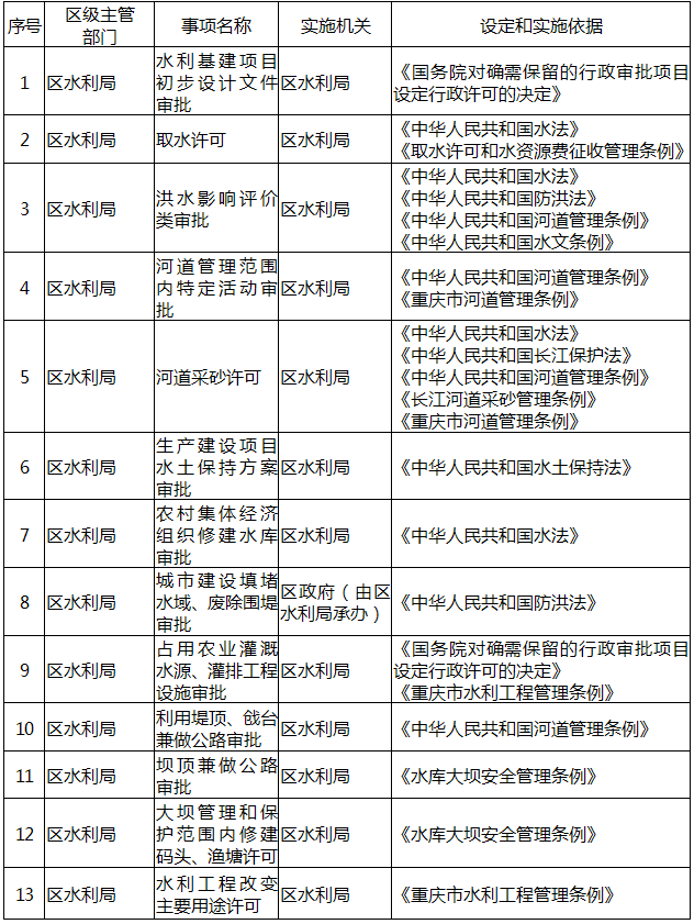 重庆市涪陵区水利局行政权力事项清单(2025年)