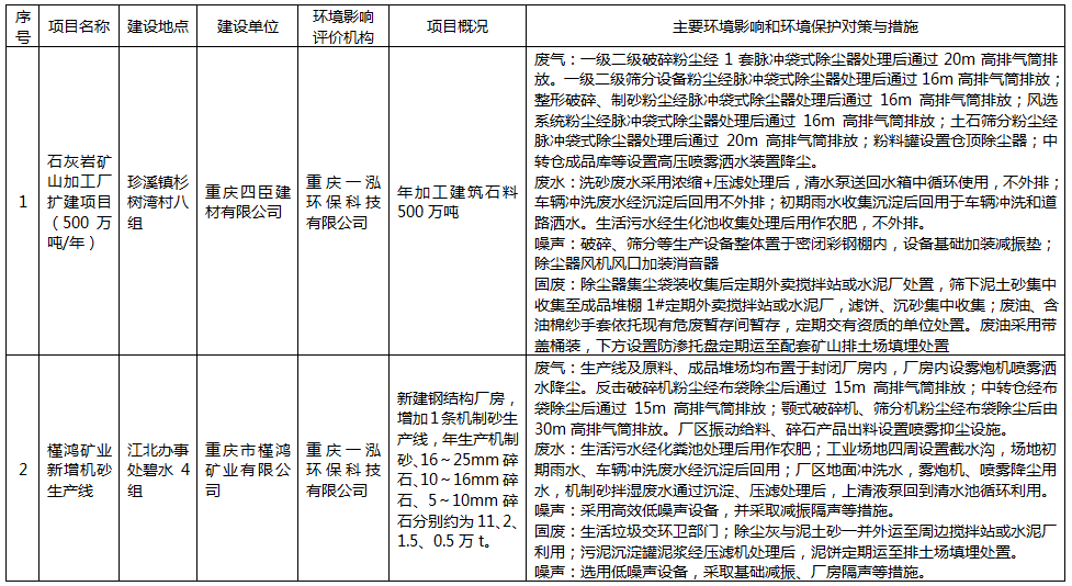 重庆市涪陵区生态环境局审查以下建设项目环评文件,现公告有关环评信息,接受社会监督。公示期为2024年5月7日——2024年5月11日。