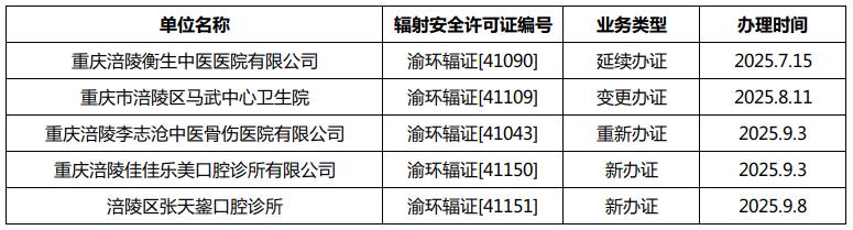涪陵区生态环境局2025年第三季度辐射安全许可证公示