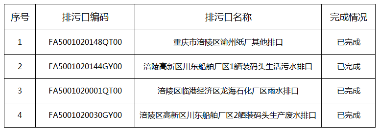 重庆市涪陵区入河排污口整治销号公示表(第七批销号清单)
