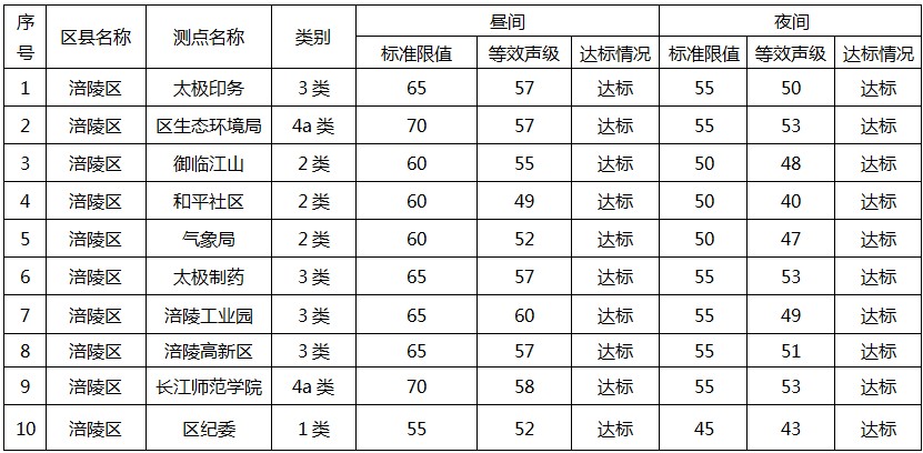 涪陵区2025年四季度环境噪声