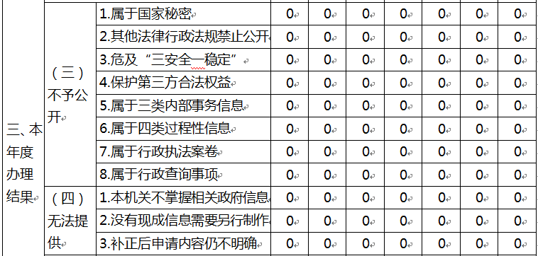 三、收到和处理政府信息公开申请情况